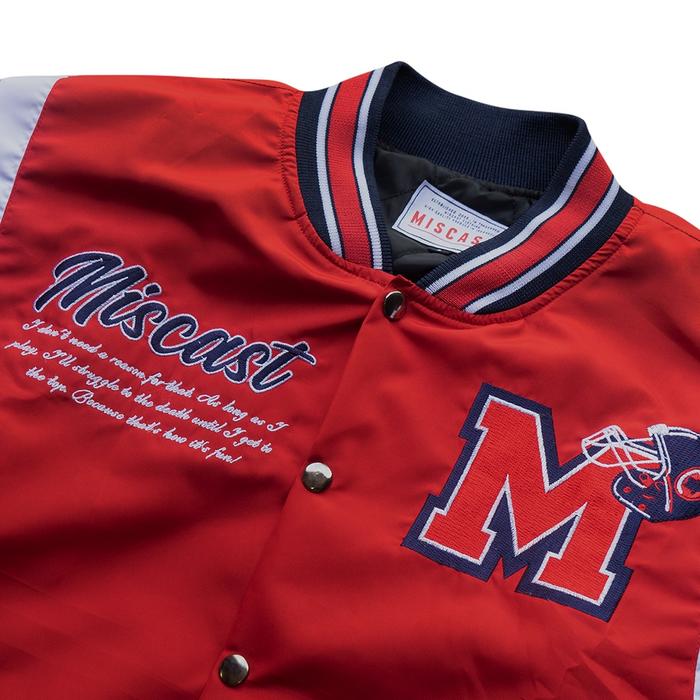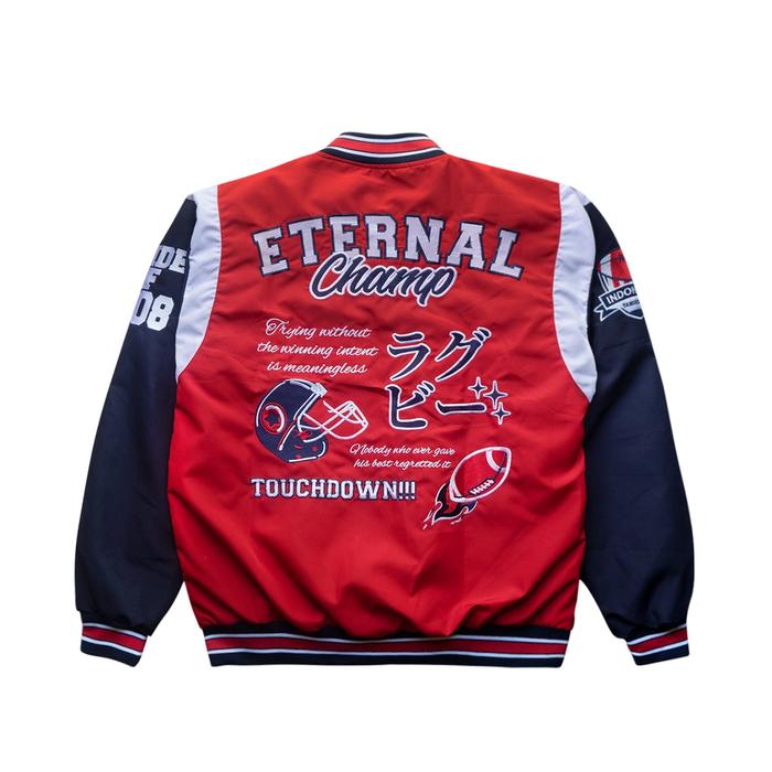 Miscast Varsity Vintage Eternal Merah jaket retro motor cougle boxy bomber Bordir Waterproof Pria Casual Keren Hitam