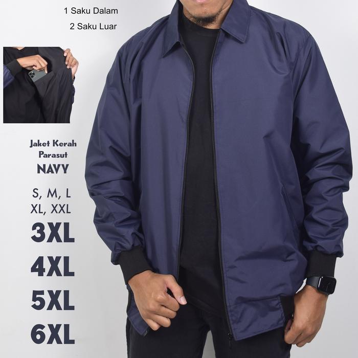 Jaket Kerah Motor Navy Parasut Pria Jumbo Big Size S M L XL XXL 3XL 4XL 5XL 6XL Parasit