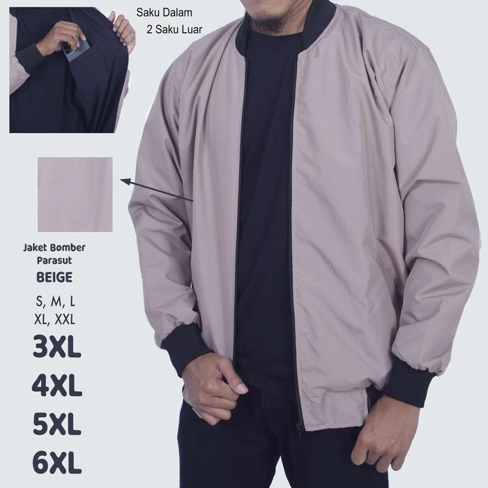 Jaket Bomber Motor Beige Parasut Pria Jumbo Big Size S M L XL XXL 3XL 4XL 5XL 6XL Parasit