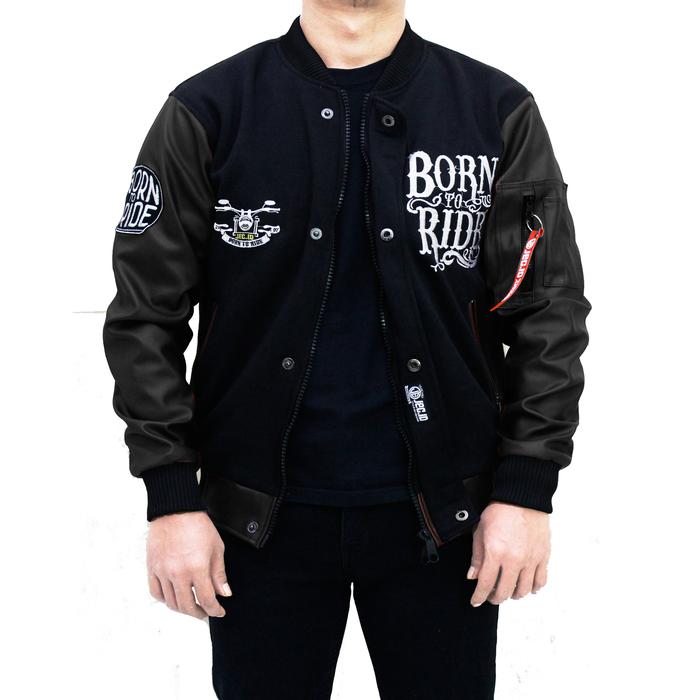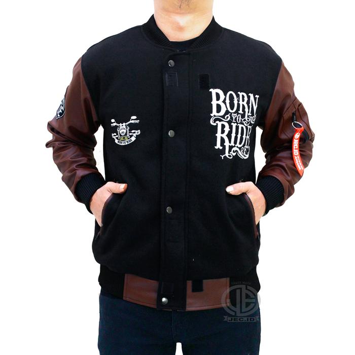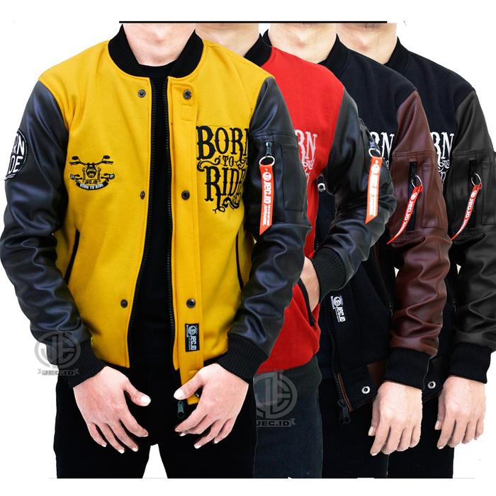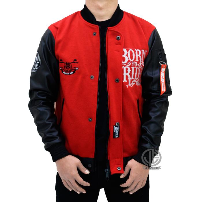 JECID Jaket Motor Baseball Varsity Karlit Mix Premium Bomber Fleece Kain Tebal Logo Bordir / Jaket Kulit / Jaket Couple