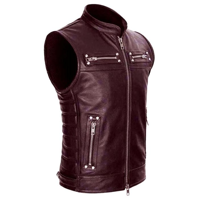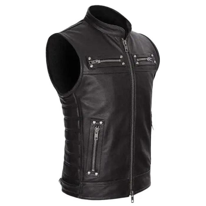 Rompi semi kulit pria turing anti angin dan hujan tnf vest Casual Hitam jaket kulit