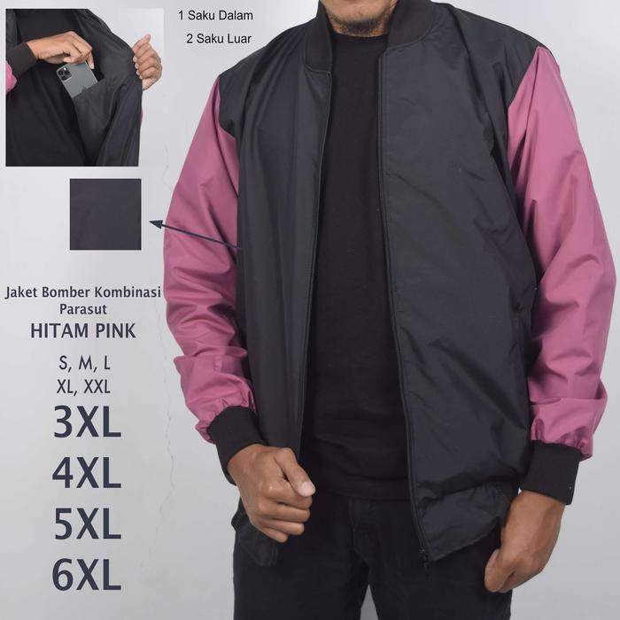 Jaket Bomber Motor Kombinasi Hitam Pink Parasut Pria Jumbo Big Size S M L XL XXL 3XL 4XL 5XL 6XL Parasit