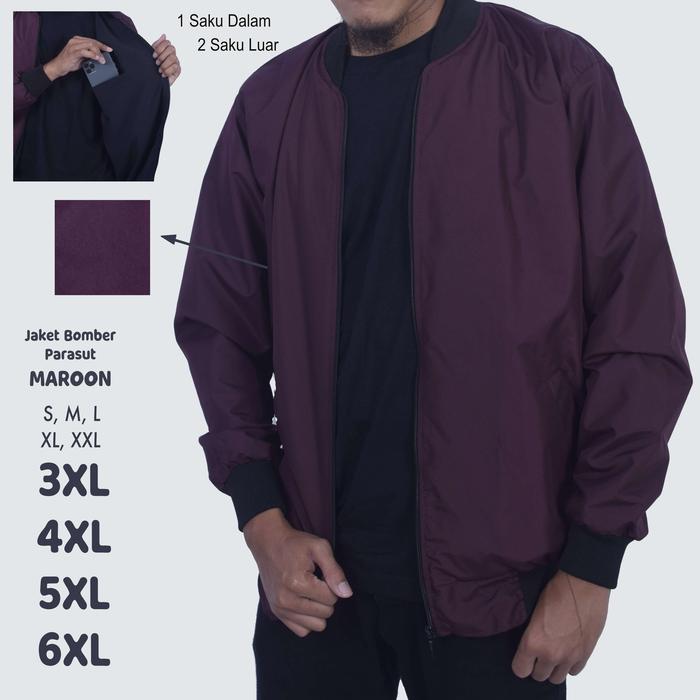 Jaket Bomber Motor Maroon Parasut Pria Jumbo Big Size S M L XL XXL 3XL 4XL 5XL 6XL Parasit
