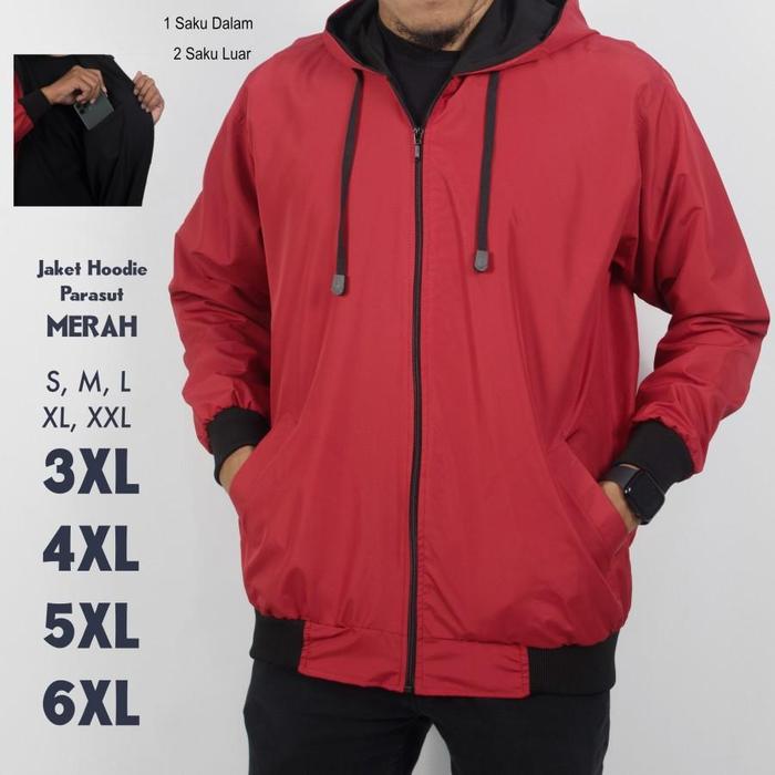 Jaket Parasut Pria Motor Jumbo Hoodie Windbreaker Merah Big Size S M L XL XXL 3XL 4XL 5XL 6XL Parasit