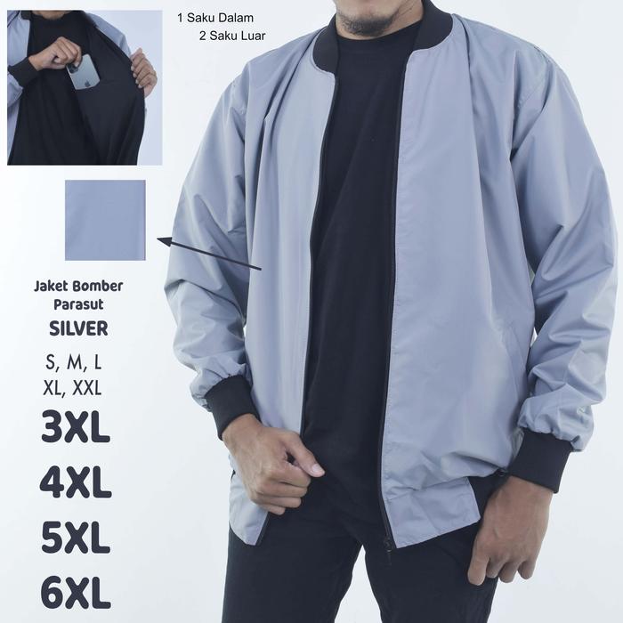 Jaket Bomber Motor Silver Parasut Pria Jumbo Big Size S M L XL XXL 3XL 4XL 5XL 6XL Parasit