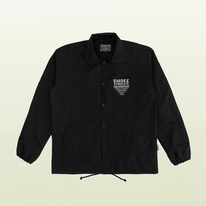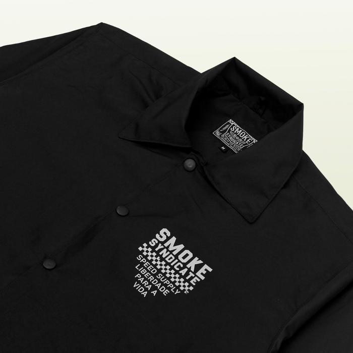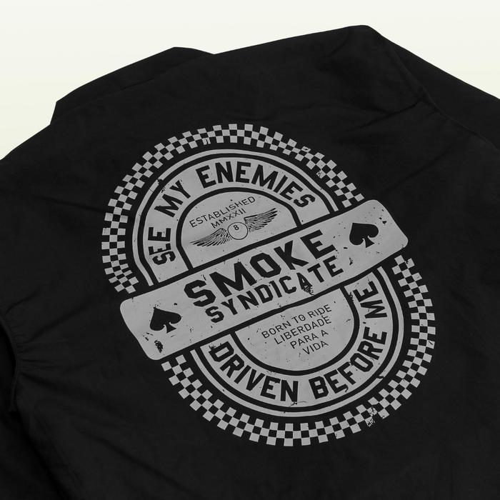 SMOKE Jaket Coach "BANDITS" Hitam Panjang Nyaman Polyester Bomber Kancing Sablon Varsity Custom Sport Tebal Navy Fleece