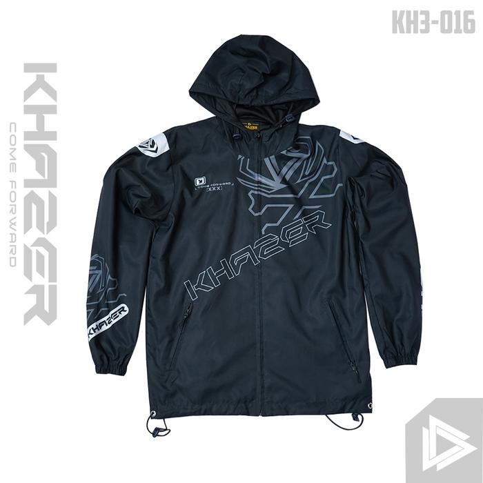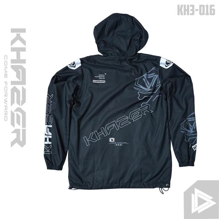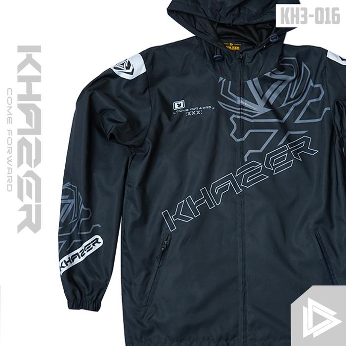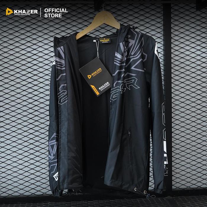 [ KHAZER ] JACKET RUNNING FULL BLACK LOGO KHAZER CROOKED Sport jaket printing Hiking Waterproof UNISEX Sport jaket motor