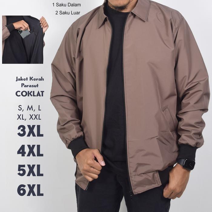 Jaket Kerah Motor Coklat Parasut Pria Jumbo Big Size S M L XL XXL 3XL 4XL 5XL 6XL Parasit