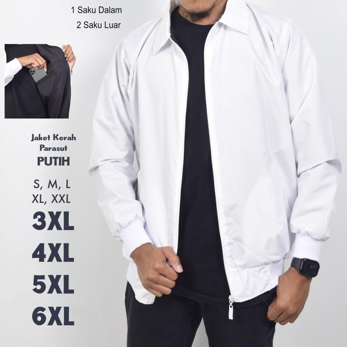 Jaket Kerah Motor Putih Parasut Pria Jumbo Big Size Parasit