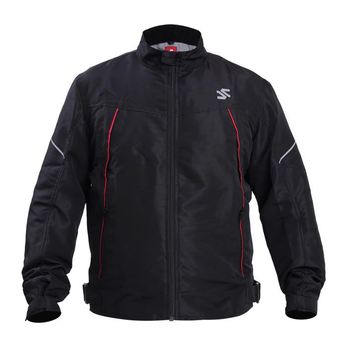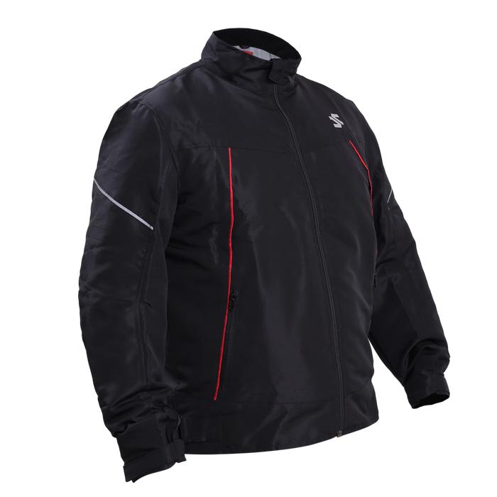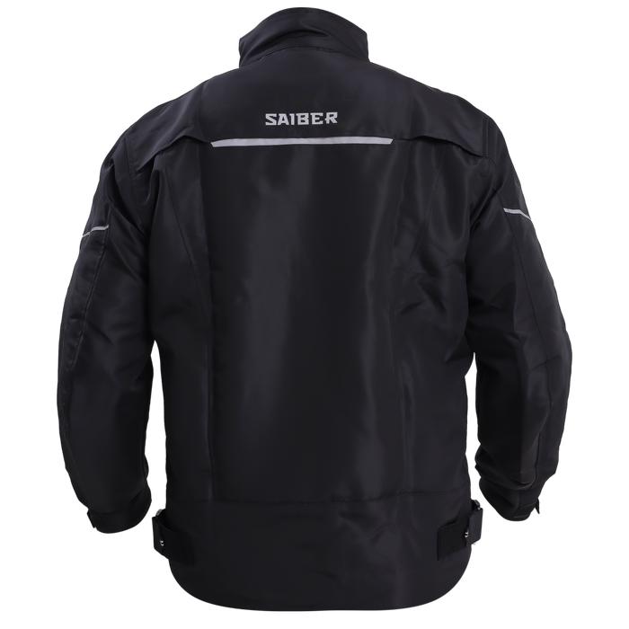 SAIBER Jaket Motor Amintor Kain Taslan Kantong Panjang Zipper Pria Hitam Abu Printing Merah Windbreaker