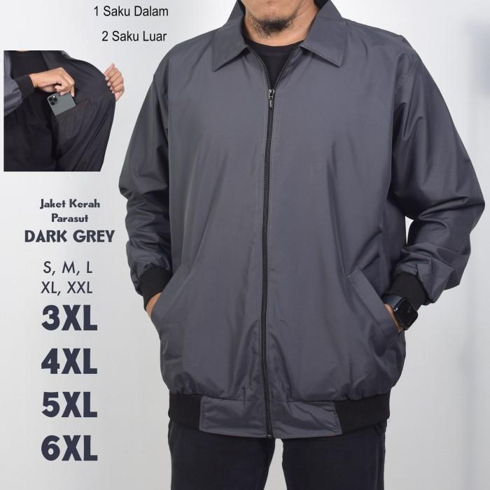 Jaket Kerah Motor Dark Grey Parasut Pria Jumbo Big Size Parasit