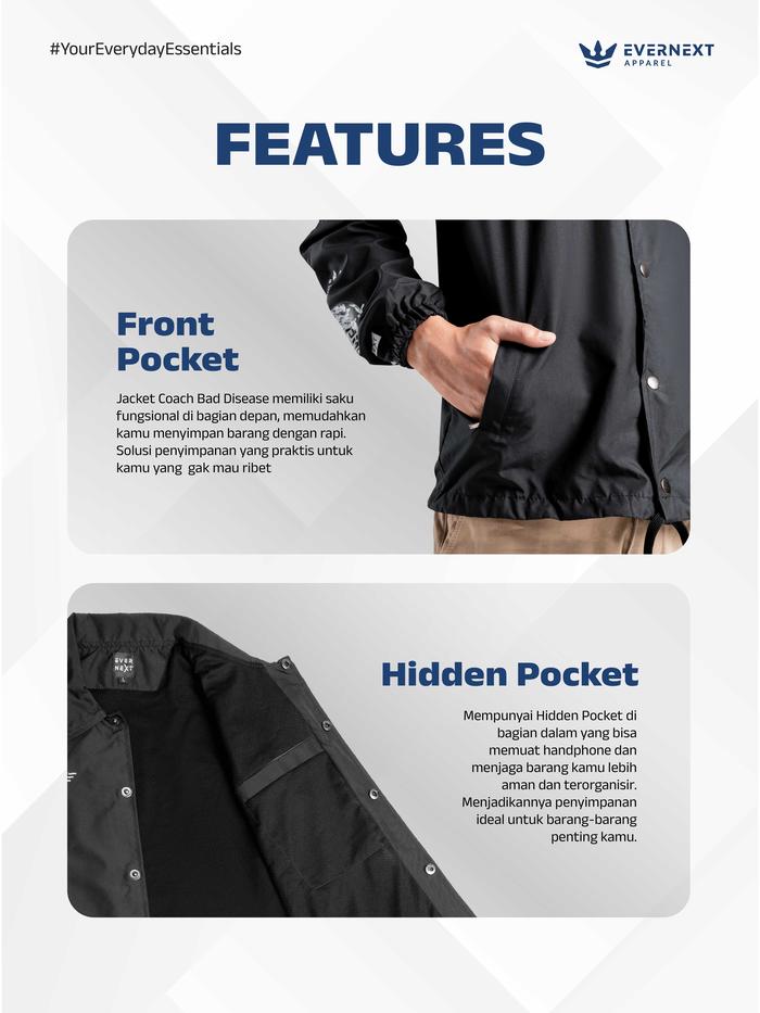 Evernext Apparel - Jaket Coach Bad Disease Pria Tahan Air Jaket Motor Hitam Pria Jaket Casual Distro