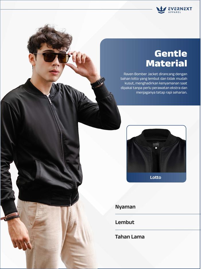 EVERNEXT Bomber Polos Pria Raven Jaket Polos Cowok Jaket Casual Pria Jaket Motor Windproof Basic Hitam Outer Keren