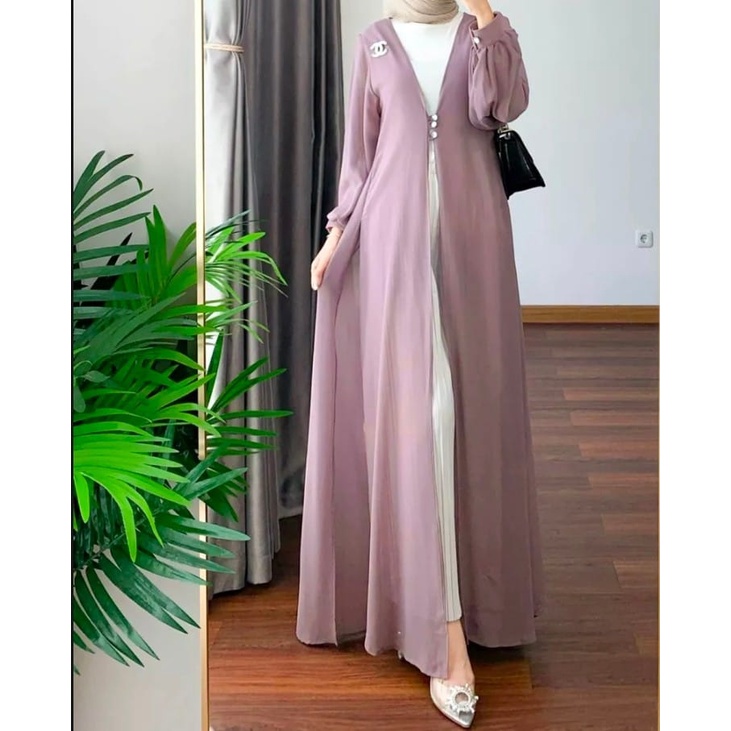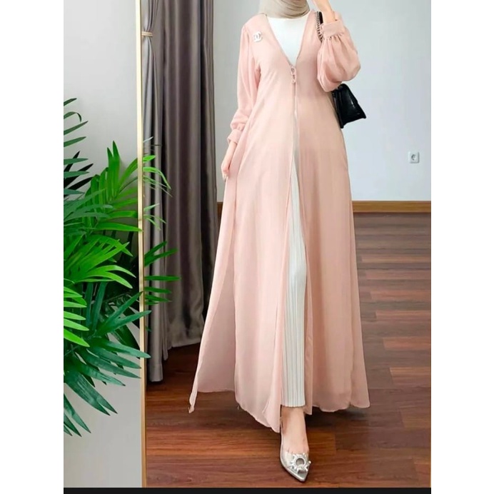 Elles - Long Outer Hijaber Ceruty Babydol/Cardigan Corean Style/ Cardigan Mewah Terkini