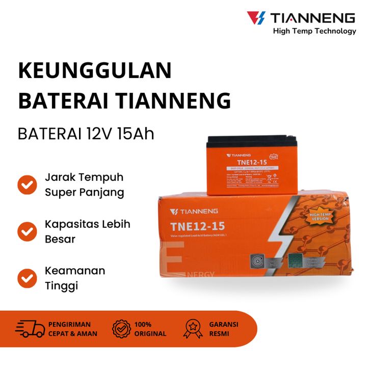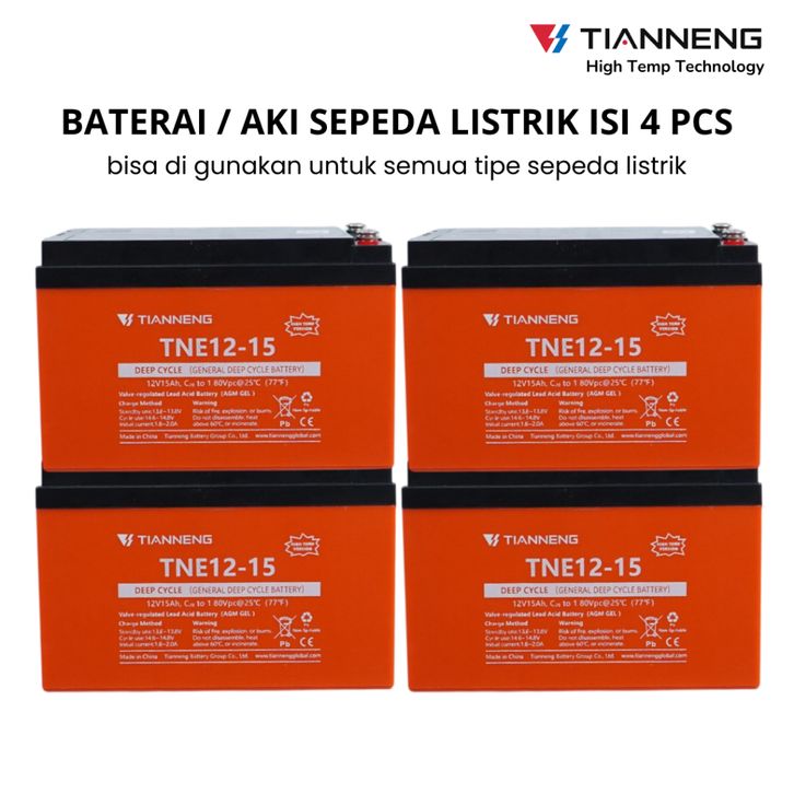 BATERAI SEPEDA LISTRIK BATERAI AKI PREMIUM TIANNENG 48V/15AH HIGH TEMPERATURE DEEP CYCLE SEPEDA LISTRIK ISI 4 PCS