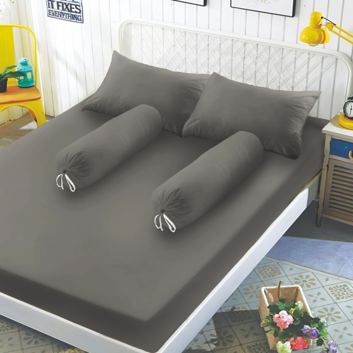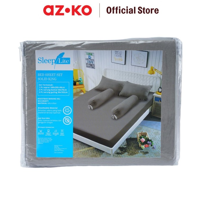 Azko Sleeplite Set Seprai Microfiber - Abu-Abu Sprei Polos Seprai Aesthetic Seprei Sheet Set Bed Sheet Aksesoris Tempat