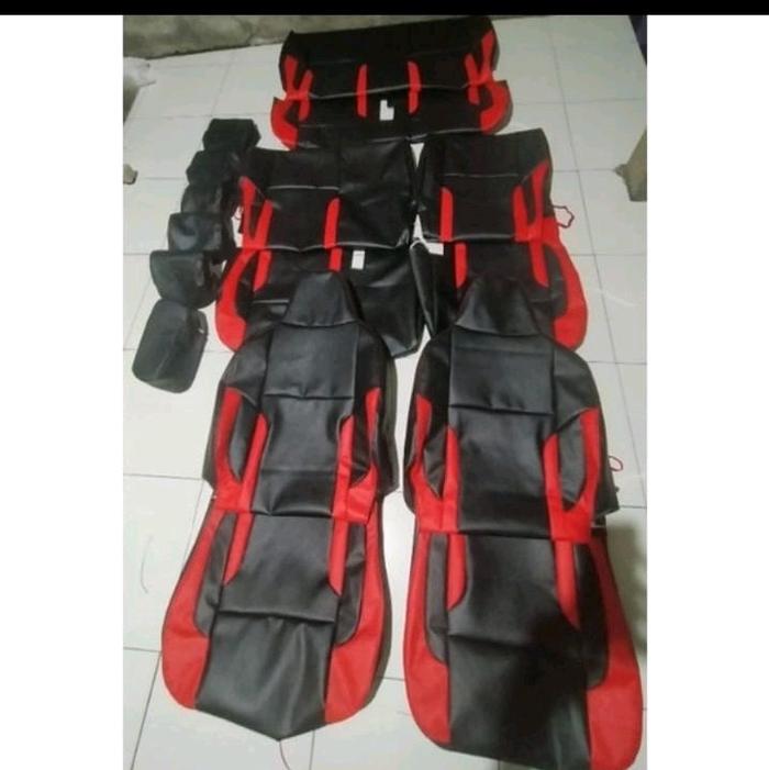 Promo Salle,,Sarung Jok Calya/Sigra Fullset 3 Baris - Hitam Mix Merah, 1 Baris
