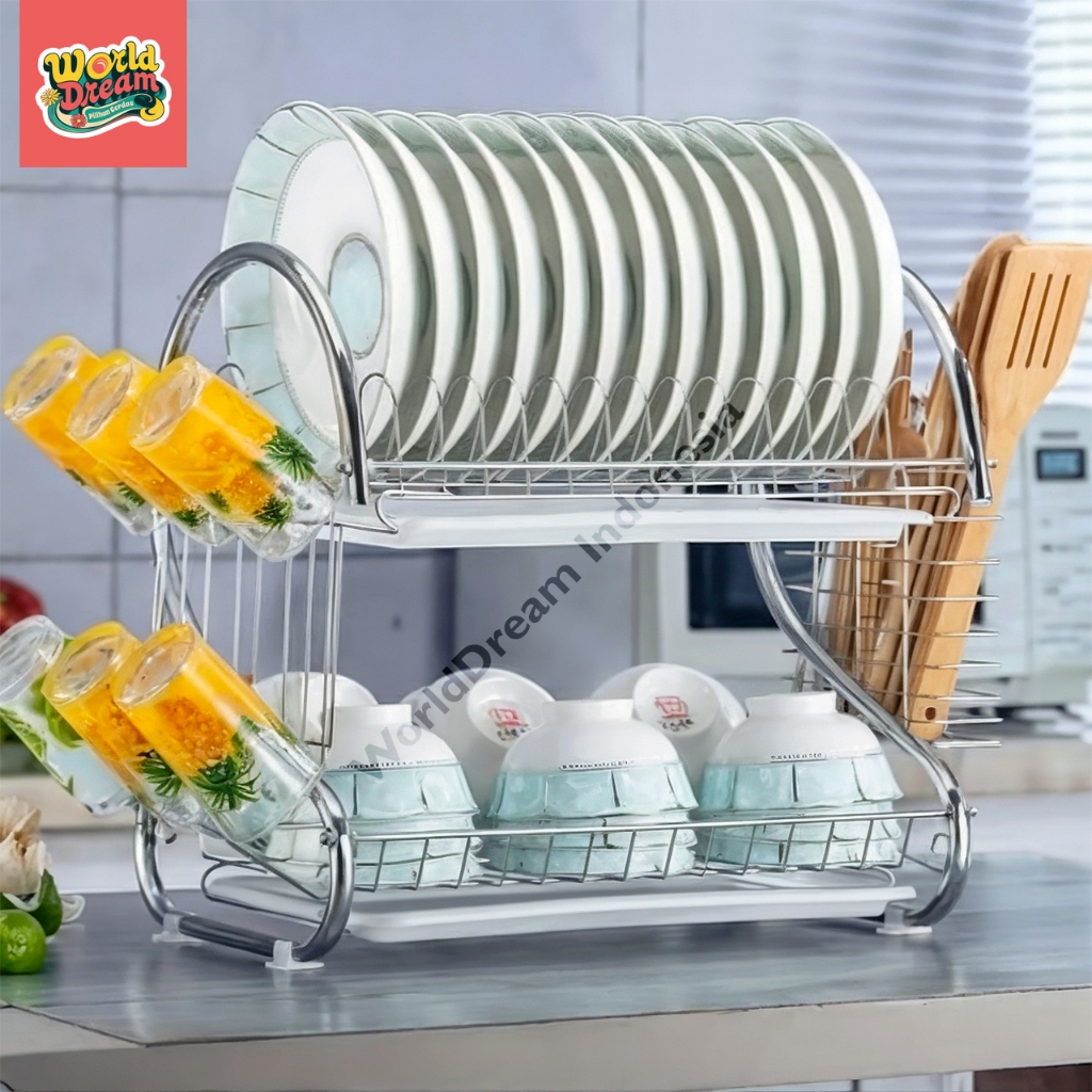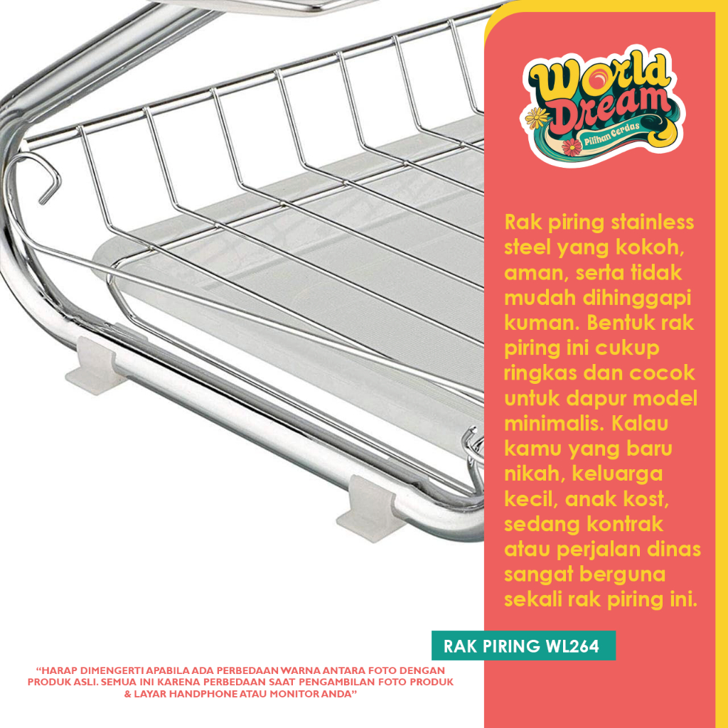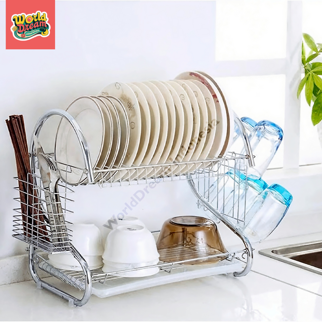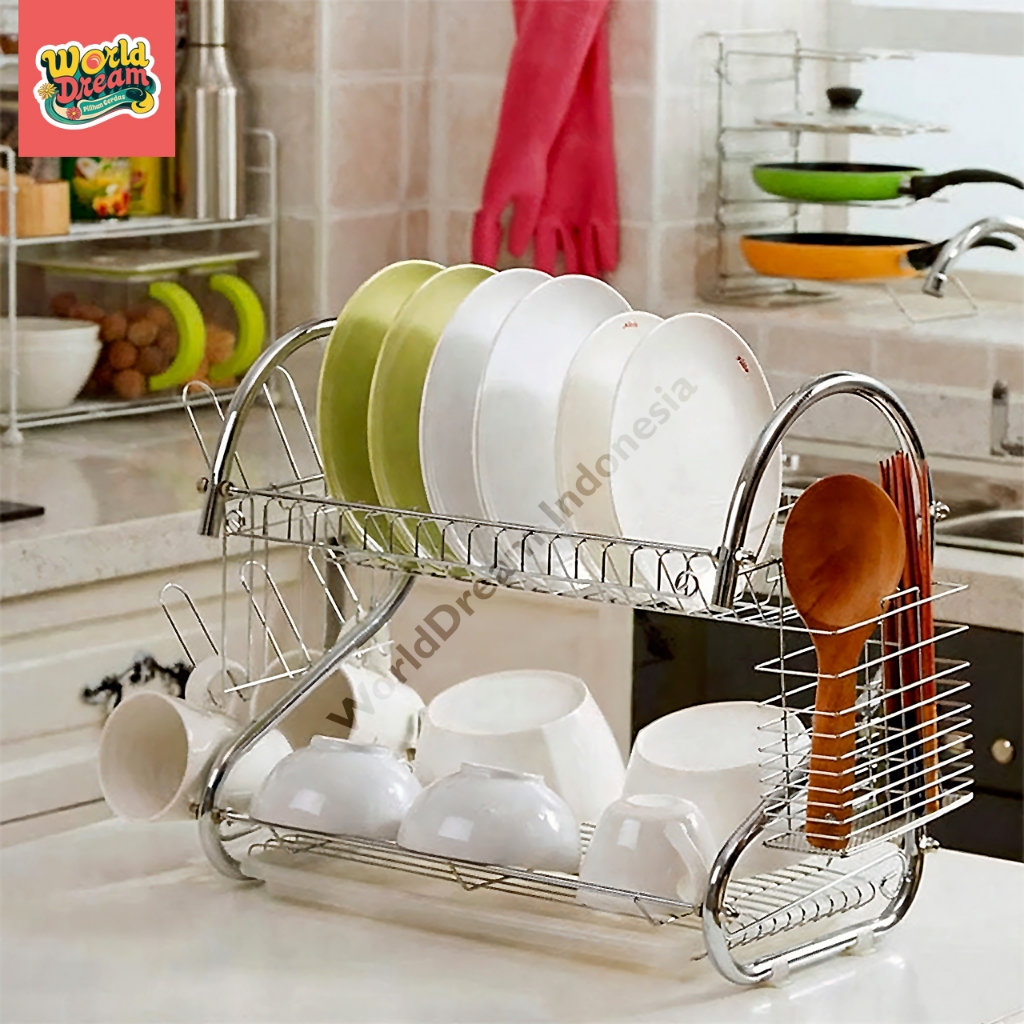 Rak Piring Stainless Worldream 2 Tingkat Gelas Sendok Serbaguna Minimalis