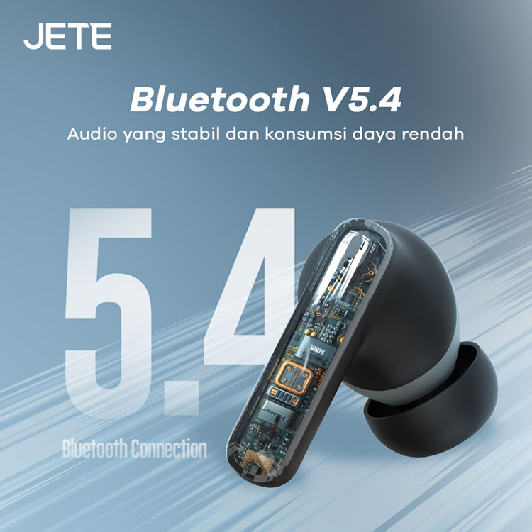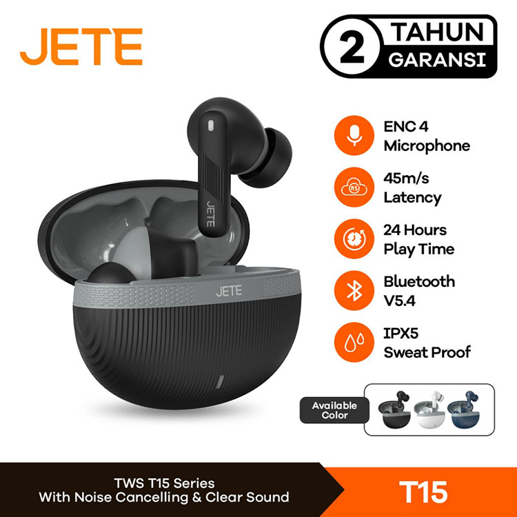 TWS Bluetooth ENC with 4 Mic JETE T15 BT 5.4 IPX5 Playtime 24H - Garansi 2 Tahun