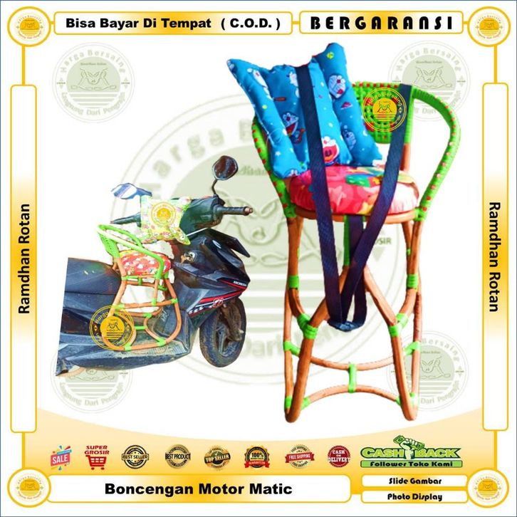 Jok Motor Anak Boncengan Rotan Motor Matic - Ramdhan Rattan - Kursi Bonceng Depan Montor Metik - Bangku Dudukan Anak Ke
