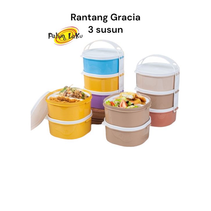 Rantang 3 susun Gracia 1 pcs - Rantang Capucino / Rantang Rainbow Food Grade / Rantang Tempat Makan Murah TERLARIS
