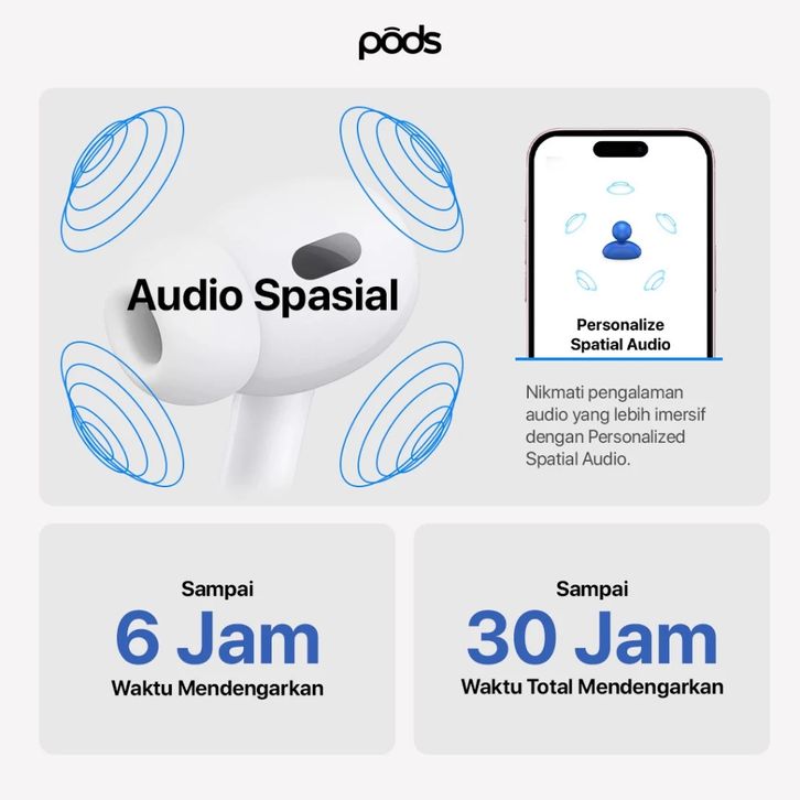 [BEST SELLER] ThePods PRIME Pro 2 Generation TWS Bluetooth – H2 Chip, Wireless Charging, IMEI Terdaftar, 9D Hifi Stereo