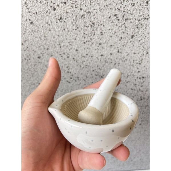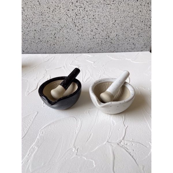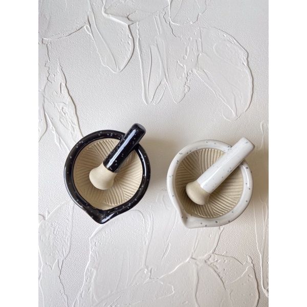 TERLARIS MINI COBEK ULEG - Cobek & Uleg Keramik Mini Hitam Putih Tahan Panas