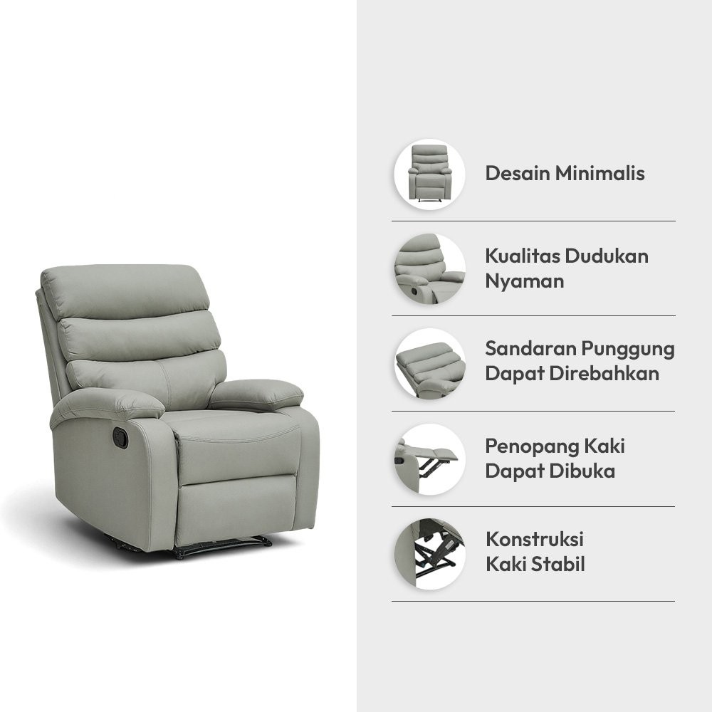 Informa Niels Sofa Recliner Fabric 1 Seater - Abu-Abu Tempat Duduk Rebahan Sofa Santai Ruang Tamu Reclining Couch Furniture Indoor Rumah
