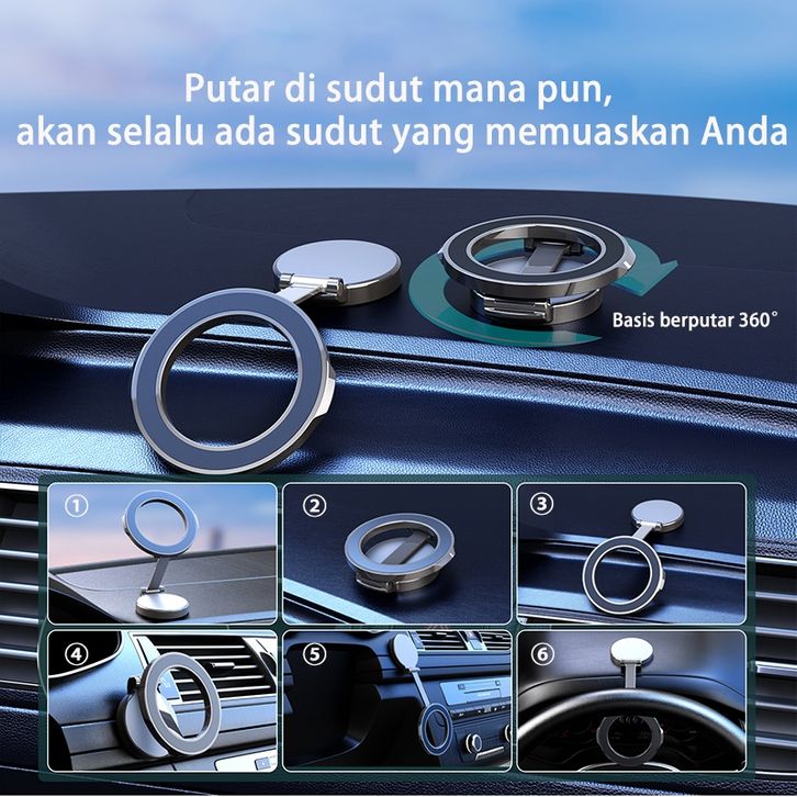 Stand Fold Magnet Car Holder 360° Rotation Bisa Dilipat Stand Hp di Mobil bagian Dashboard Magsafe Car Phone