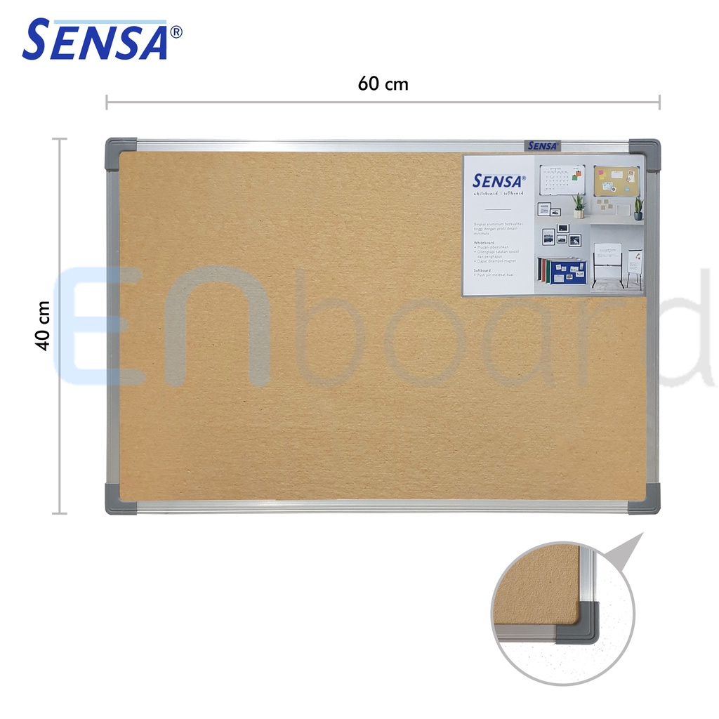 Softboard / Pin Board / Cork Board / Papan Pengumuman / Mading Gantung Polos Sensa 40 x 60 cm