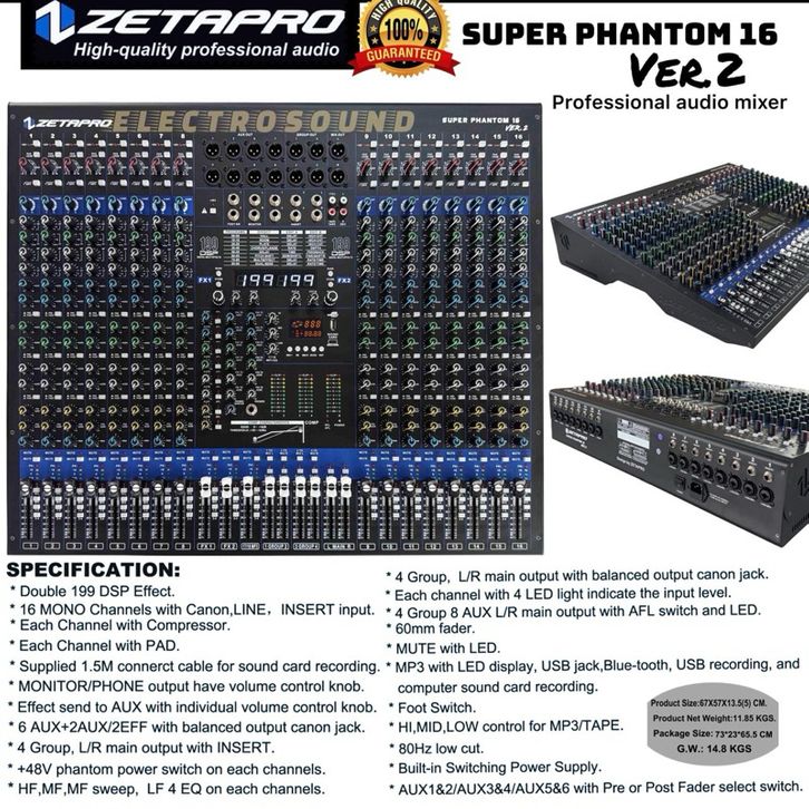 MIXER AUDIO ZETAPRO SUPER PHANTOM 16 VER 2, COMPRESSOR, DOUBLE EFFECT / Zetapro Original