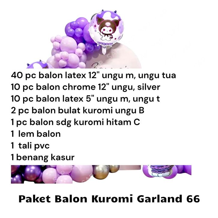 Paket Balon KUROMI GARLAND 66 Dekorasi Ulang Tahun Kuromi
