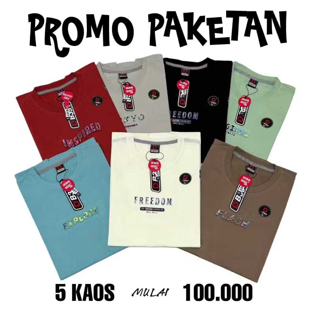 Promo 100ribu 5pcs Kaos Branded Distro Pria Wanita Semi KATUN 24S size M-L-XL-XXL Jumbo