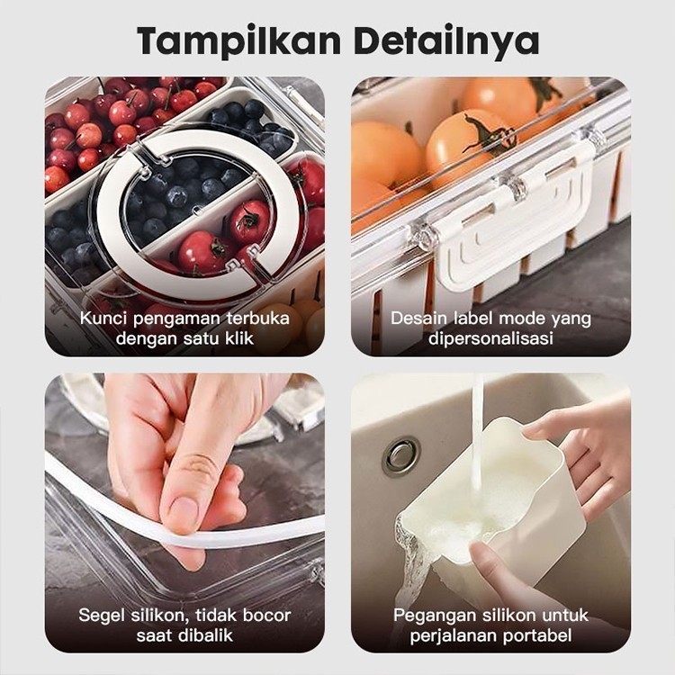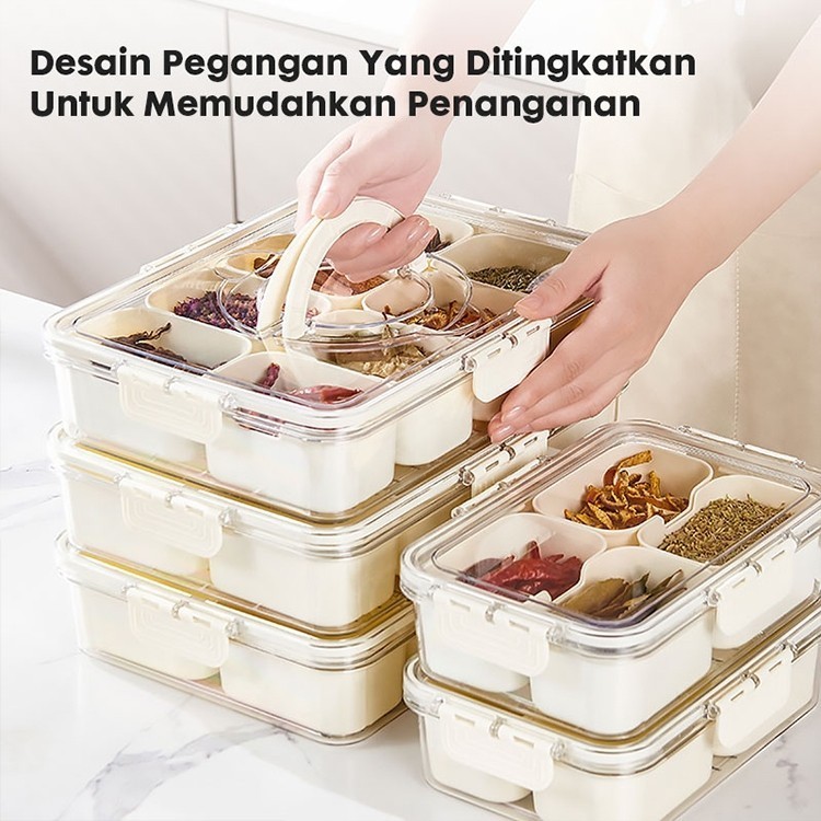 Food Container 4/8 Grid | Wadah Makanan Ringan & Bumbu Dapur | Tutup Kedap Udara
