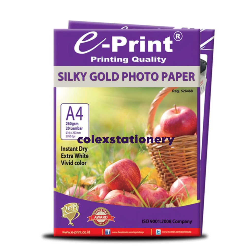 Kertas Foto Silky / Glossy Photo Paper Gold Silky Premium Ukuran A4 260 Gsm Isi 20 Sheets E-print