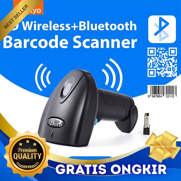 [Mall] Bonkyo 2D Barcode Scanner Laser 2.4G USB Wireless + Bluetooth 80m Connection baterai 2000mAh working 72 jam