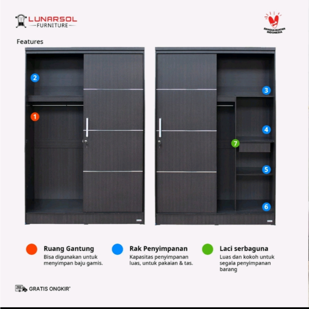 [Star] Lemari Pakaian 2 Pintu Sliding Minimalis – Desain Elegan & Hemat Tempat, Cocok untuk Kamar Modern!