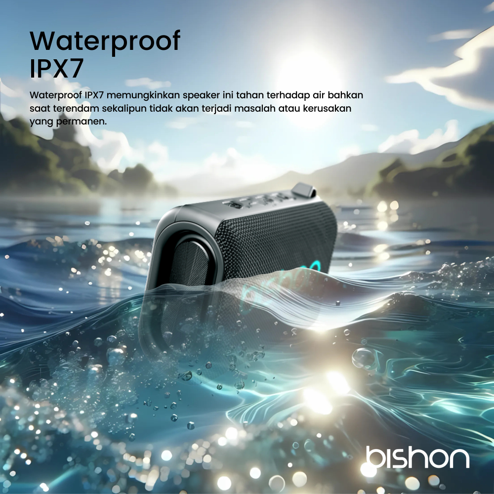 [Mall] Bluetooth Speaker BISHON Blast Waterproof Dual Subwoofer IPX7