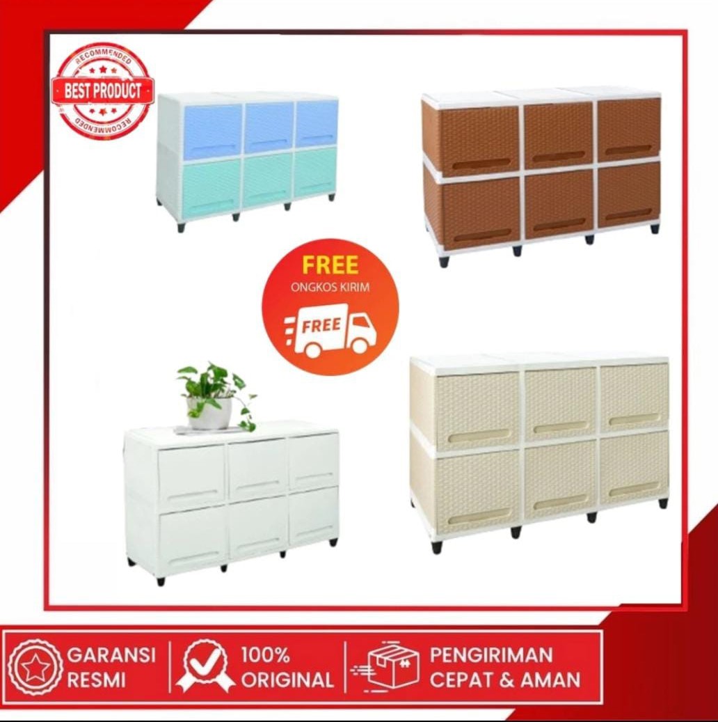 Lemari Pakaian Baju Plastik triple club flip 2 susun Rotan Buffet TV 6 kotak - GRATIS ONGKIR