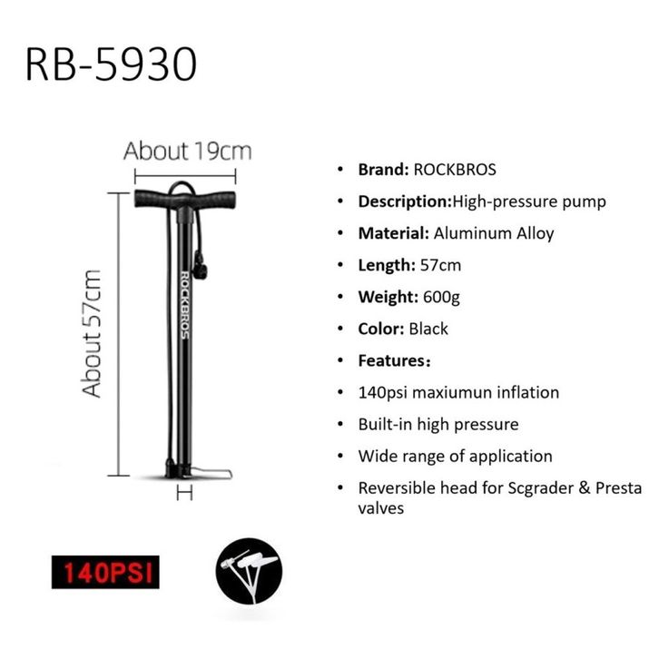 POMPA BAN SEPEDA ROCKBROS 5930 BOLA 140 PSI PENTIL KECIL BESAR PRESTA SCHRADER HIGH PRESSURE PUMP MTB