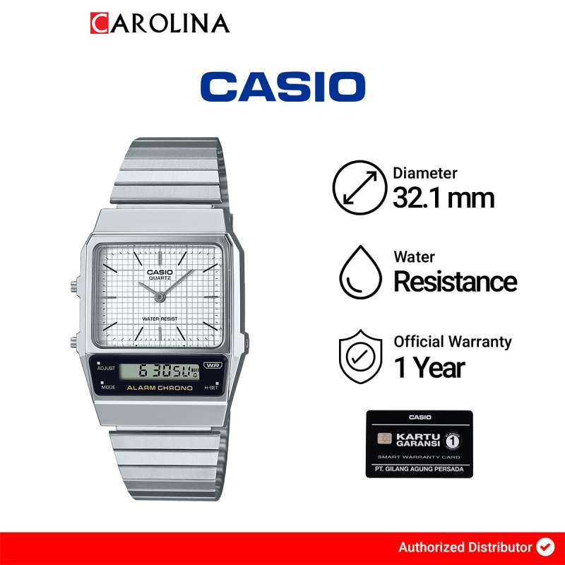 Jam Tangan Unisex CASIO General AQ-800E-7A Dual Tone Digital Analog Dial Stainless Steel Band
