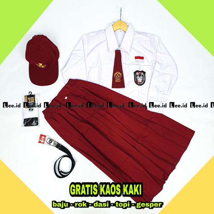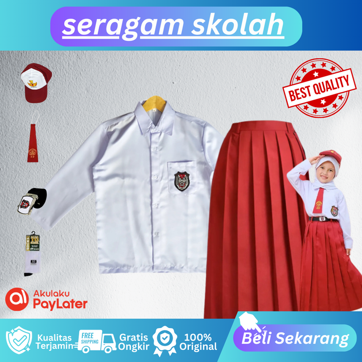 Seragam Sekolah SD Merah Putih Lengan Panjang Perempuan Kelas 1-6 SD Setelan Lengkap SD,SMP,SMA,SMK Laki-Laki,Perempuan