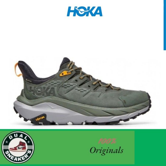 SEPATU HOKA ONE ONE KAHA 2 LOW GTX GORE-TEX HIKING SHOES - GREEEN / YELLOW