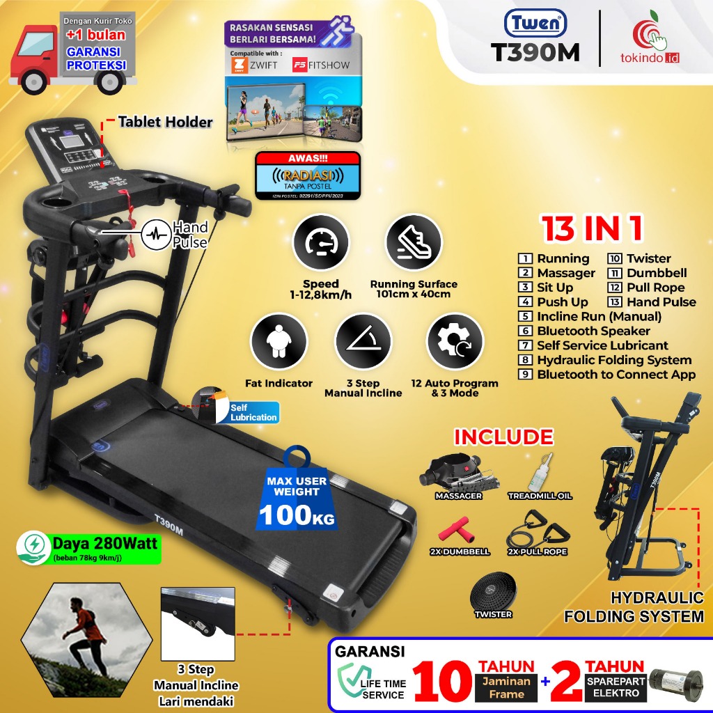 [TANPA ONGKIR] Twen T309M T390M Treadmill Portable / Treadmill Electric Low Watt / Treadmill Elektrik Alat Olahraga