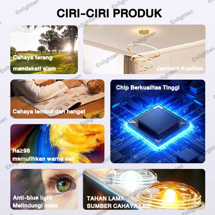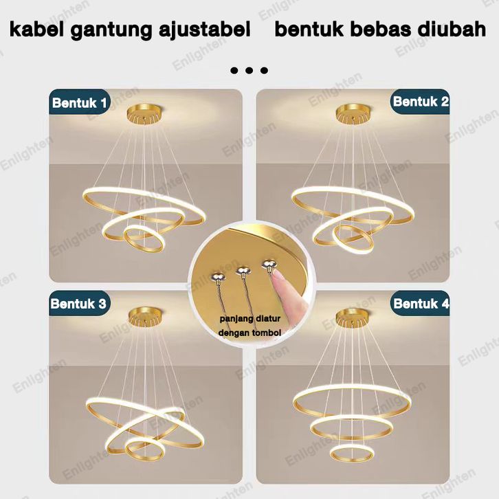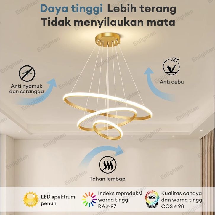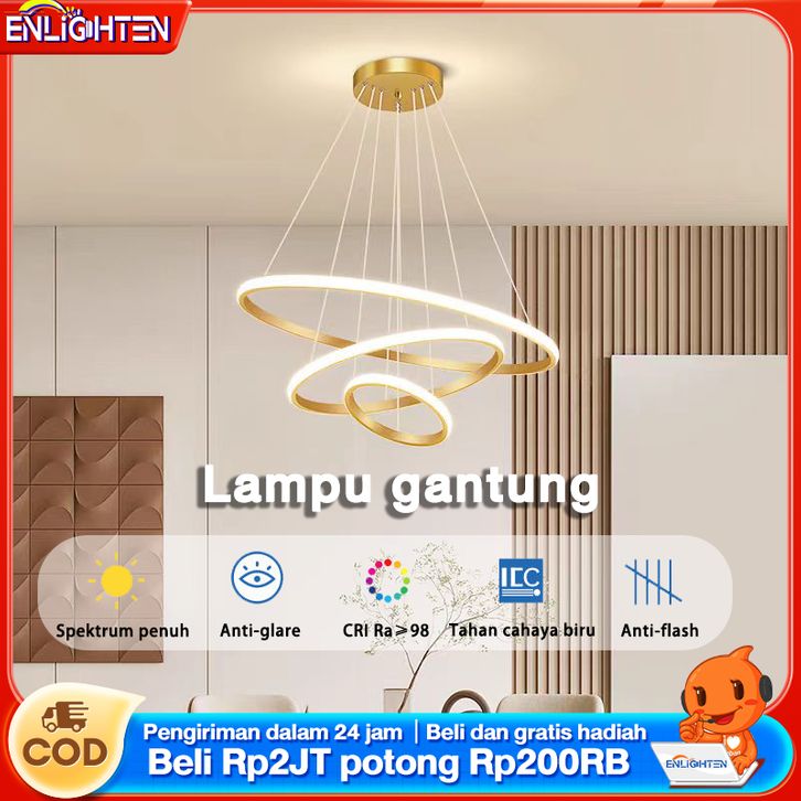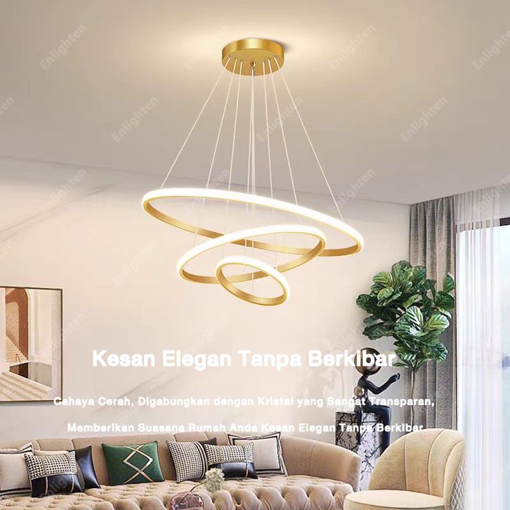 lampu Gantung Minimalis LED 3 Ring Modern Ruang Tamu Lampu Gantung 3 Warna