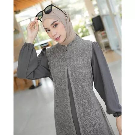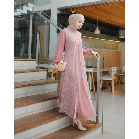 DRESS WANITA KONDAGAN ZALFA BAHAN CRINKLE AIRFLOW + CHANTILY GAMIS PESTA GAUN MEWAH ELEGANT SERAGAMAN KELUARGA