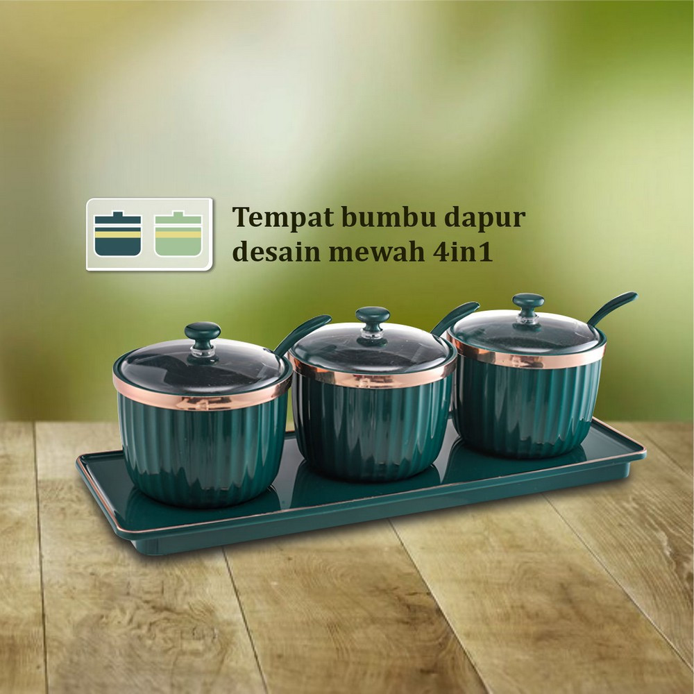 Tempat Bumbu Dapur Set Sendok 4IN1 / Wadah Bumbu Aesthetic / Penyimpanan Gula Garam Dapur Serbaguna / Kitchen Set Kotak