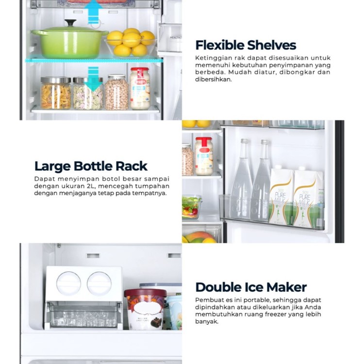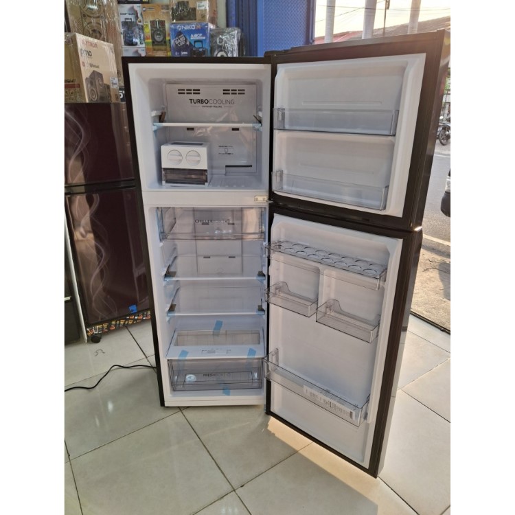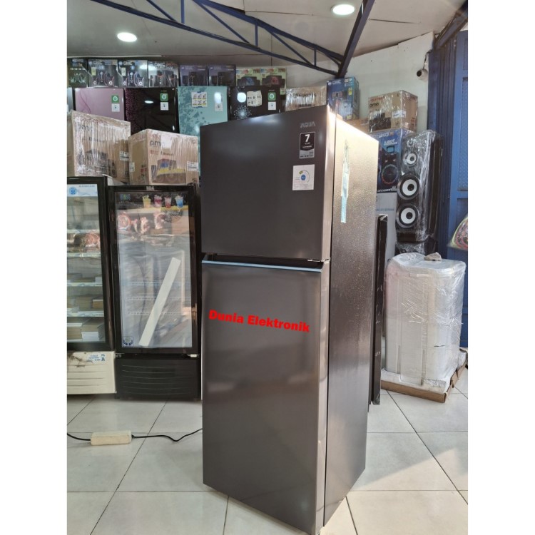 KULKAS 2 PINTU TANPA BATU ES DAN HEMAT LISTRIK AQUA SANYO DTM 285 CBP DS 280 LITER NO FROST ICE TWIST 49 WATT TERLARIS