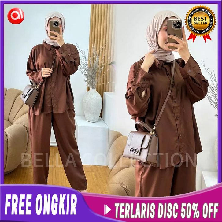 One Set Polos Oversize Rayon Twill Premium Halus dan Adem Setelan Kemeja Kulot Wanita Kekinian