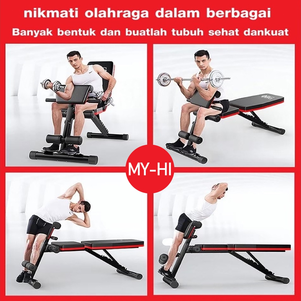 [TANPA ONGKIR] MY-HI Kursi Gym Sit Up Bench Adjustable Folding Fitness Bench Press Dumbbell Weight Bench